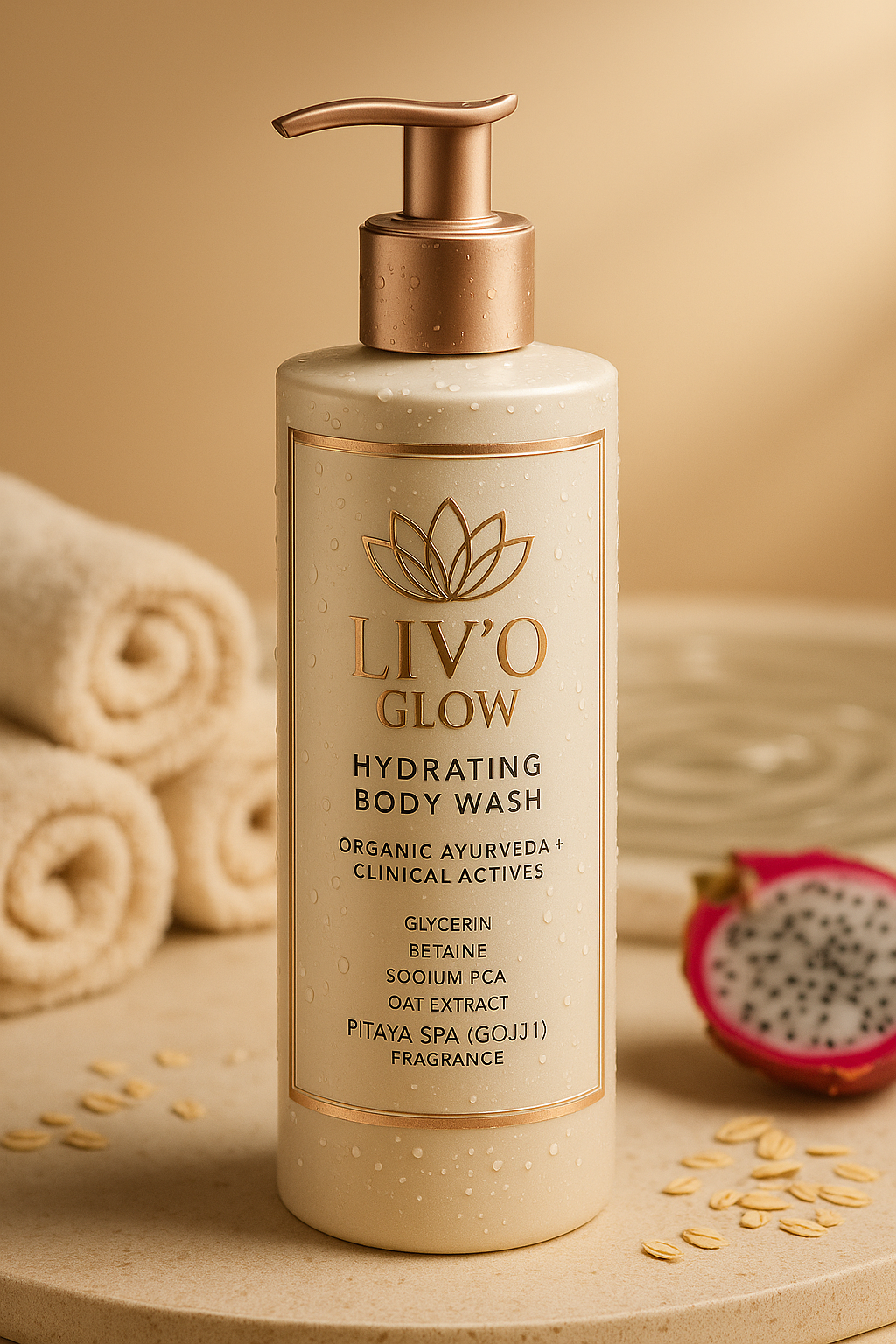 Transform your daily shower into a spa-like ritual with Liv’O Glow Hydrating Body Wash. Crafted with a blend of Organic Ayurveda and advanced skin-conditioning ingredients.