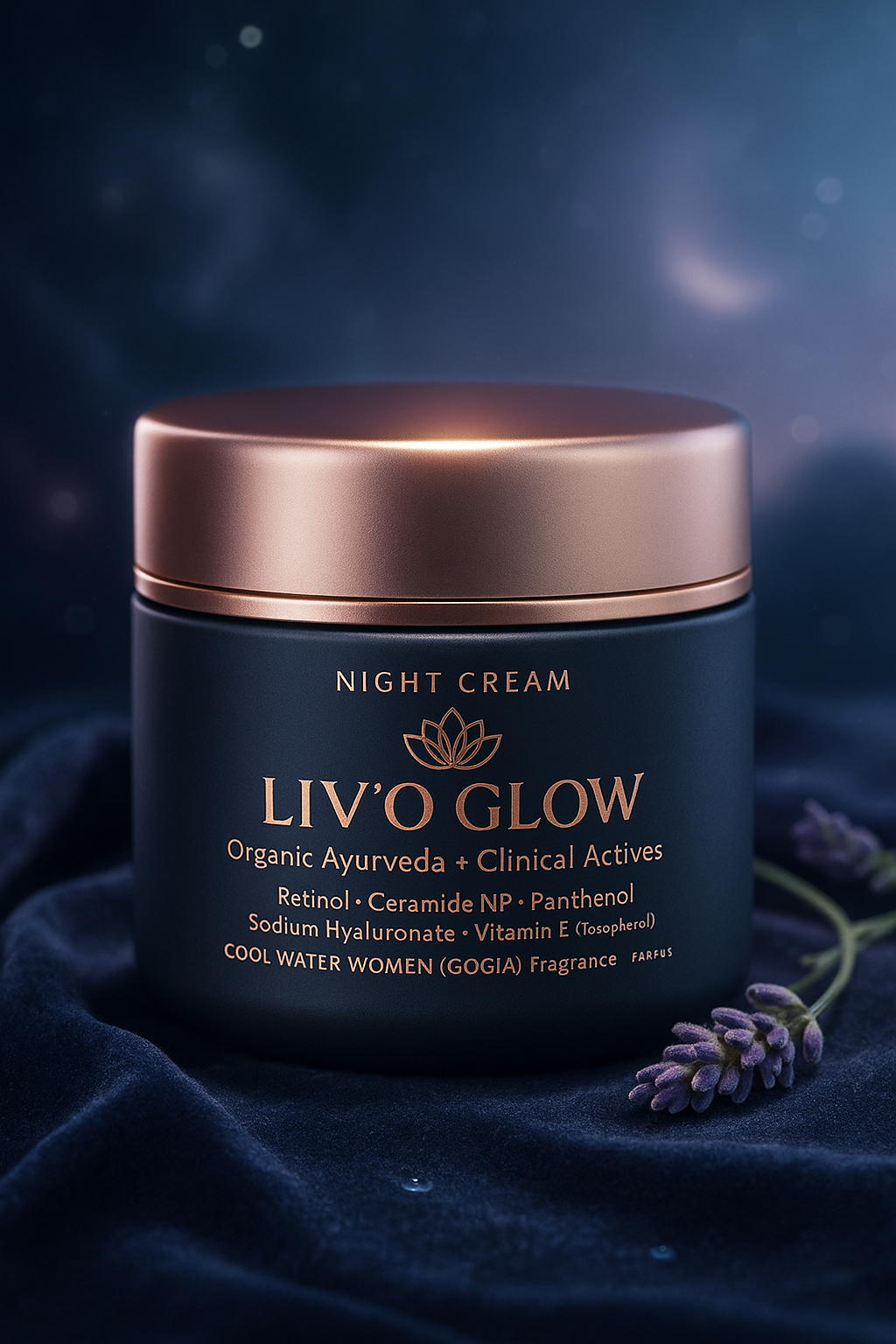 Wake up to beautifully renewed skin with Liv’O Glow Night Cream, a luxurious blend of retinol-powered renewal and Ayurvedic nourishment.