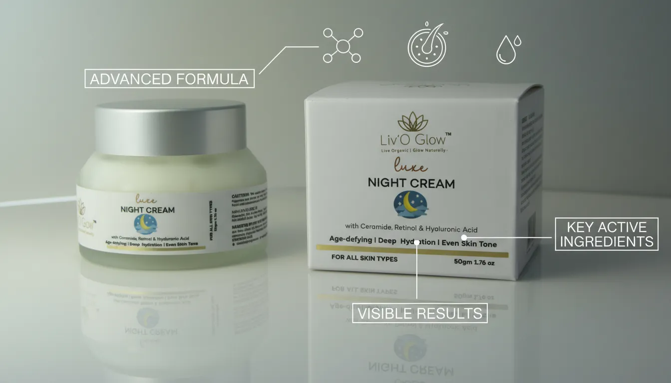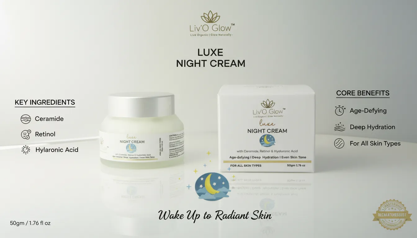 Wake up to healthier, smoother, and naturally glowing skin with Liv’O Glow Luxe Night Cream — a premium overnight skincare formula designed to deeply nourish, repair, and rejuvenate your skin while you sleep.